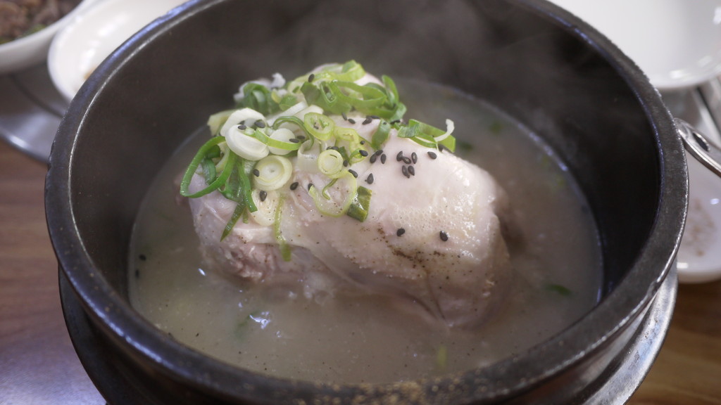 サムゲタン。人生初サムゲタン。中にもち米が入っていてこれ一つでお腹いっぱいになります。
