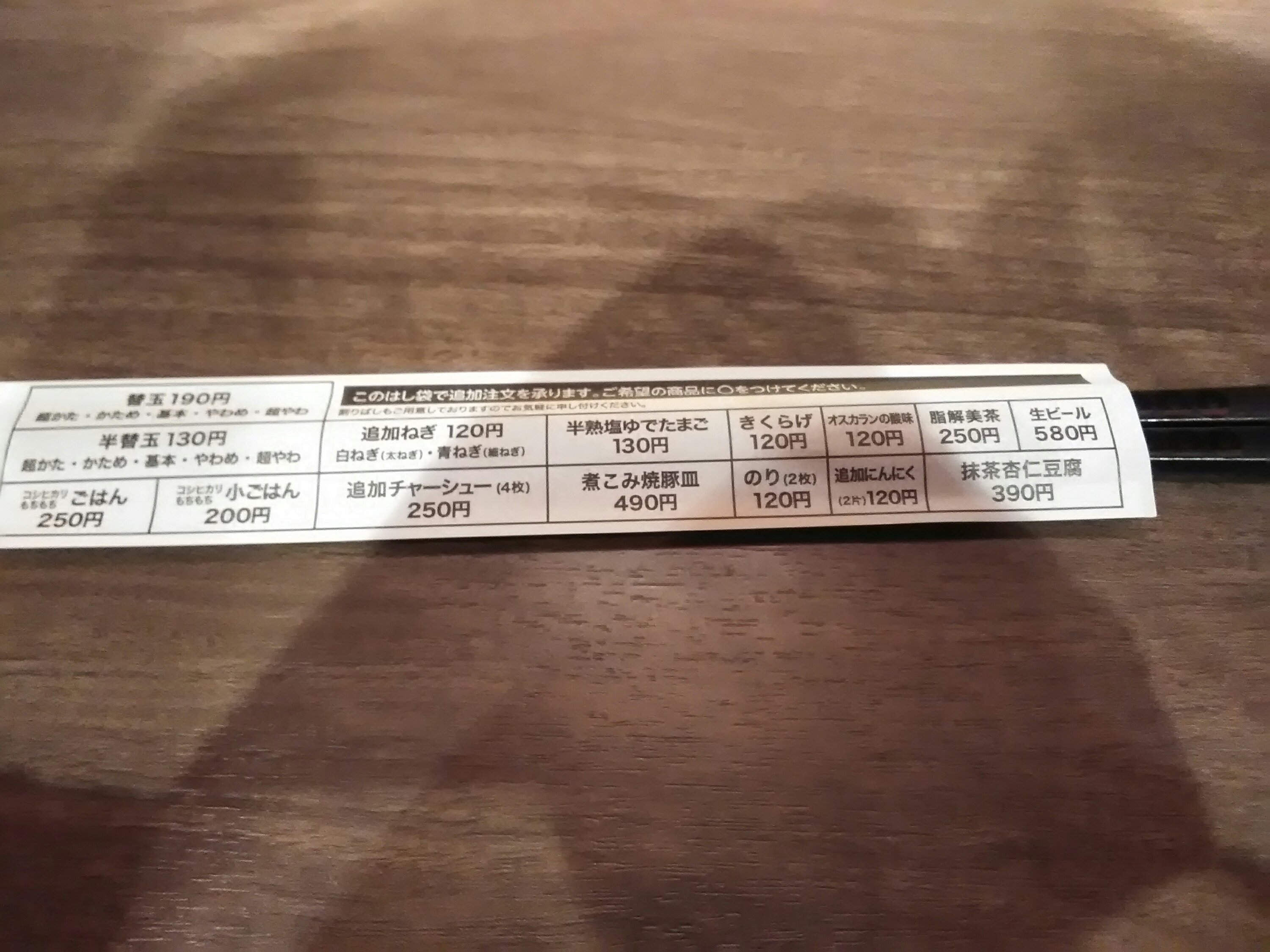 一蘭といえばカウンターが一つ一つ仕切られているのが特徴です。カウンターに座ると味のオプション(スープが濃いめか薄めか、辛子は入れるかなどなど)を紙に記入して店員さんに渡します。