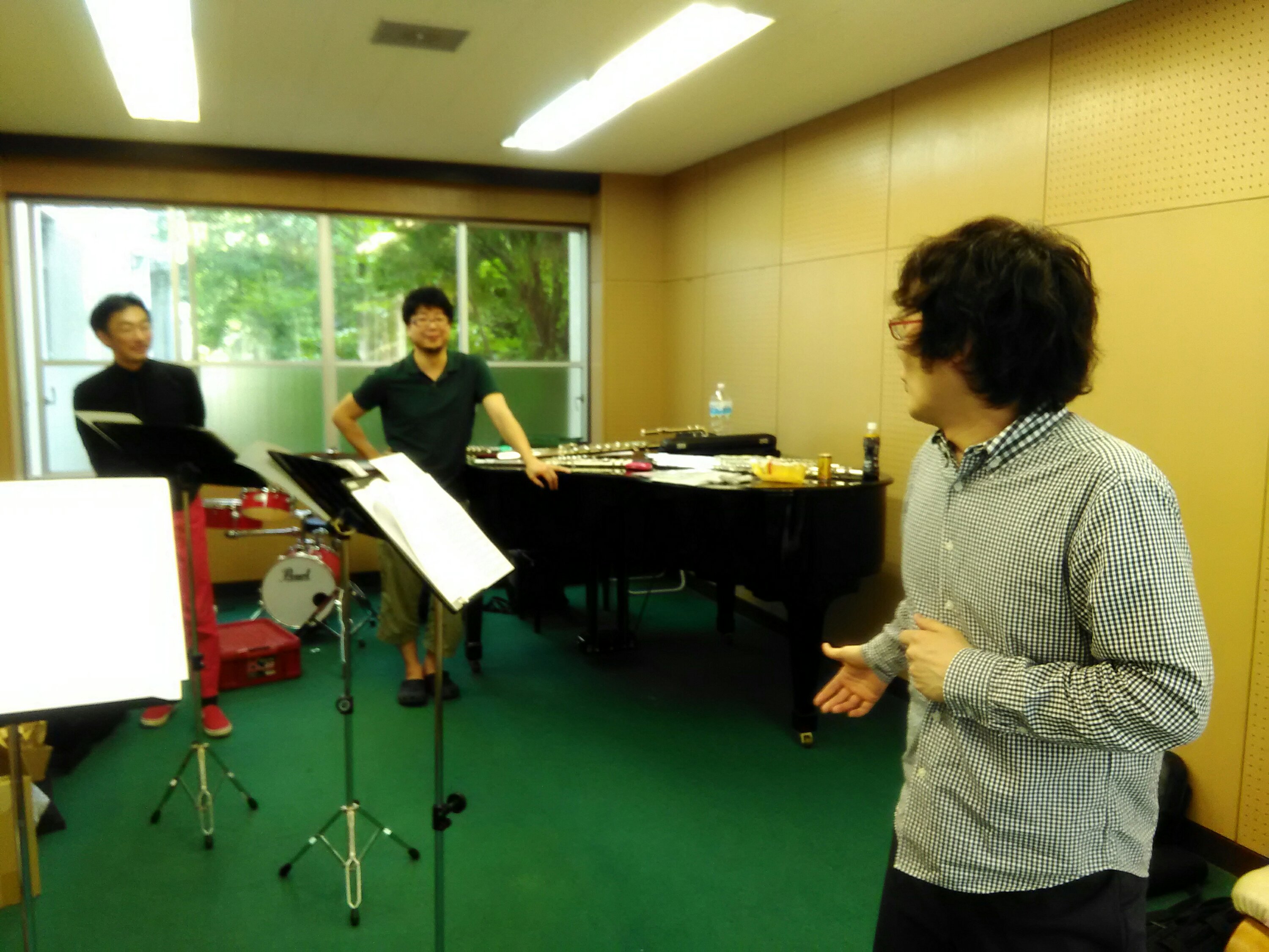 リュネット定期公演 その4 音楽 X Facebook はてブ Pocket LINE コピー 2018.05.192018.06.03 アンサンブル・リュネット第11回定期公演まで一週間をきりました。白熱したリハーサルが続きます。 これはリュネットのおもちゃばこ・・・ではなく、打楽器小物たちです。 台本の読み合わせ。僕はあとから登場。初めは3人でスタートします。今回の台本は森本が担当しました。今回は学園ものと言うことで先生と生徒を交代で演じていきながら、コンサートが進行する予定です。 含蓄モロヘイヤ こちらはオルフェオとエウリディーチェの練習シーン。オルフェオが振り返ってしまいます。 Related posts: 第5回こなんアンサンブルフェスティバル 中国で食べたもの 日本フルート協会創立50周年記念コンサート リュネット第11回定期公演 その2