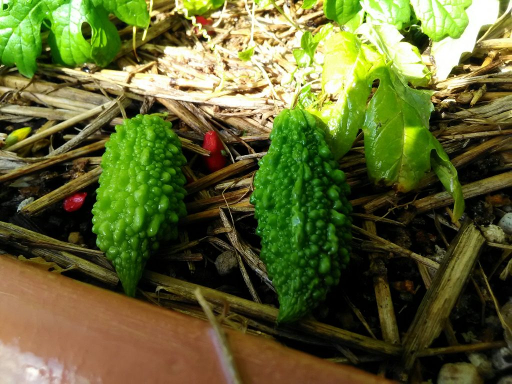 我が家のグリーンカーテンはゴーヤー。ゴーヤが植えてあるプランターを見てみると、小さなゴーヤがふたつ落ちていました。