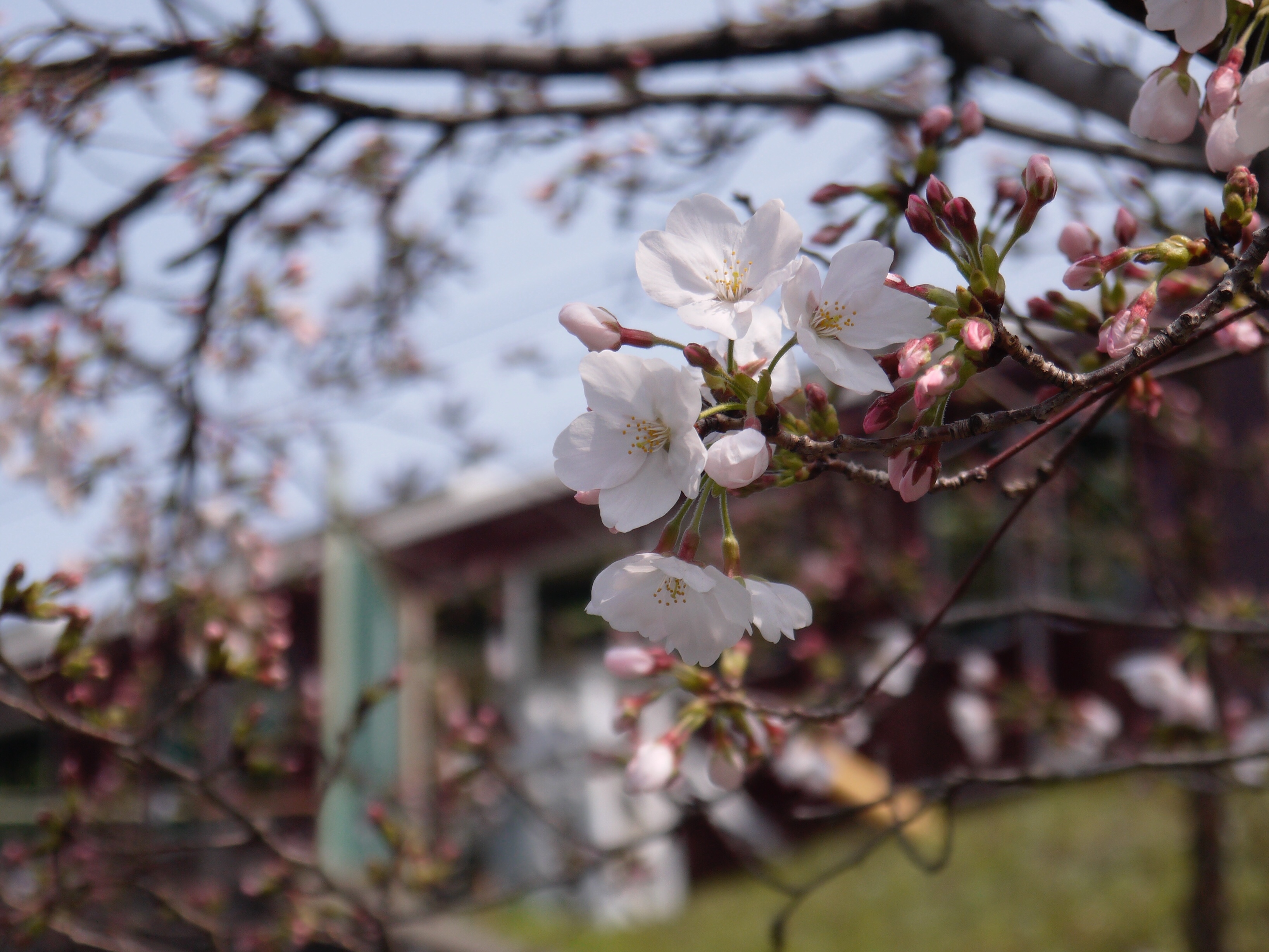 長い冬も終わり、桜が咲き始めました。写真は阪急西京極〜西院の間で、後ろに写っているあずき色は阪急電車です。桜の時期は、京都に住んでいて良かったと思いますね。