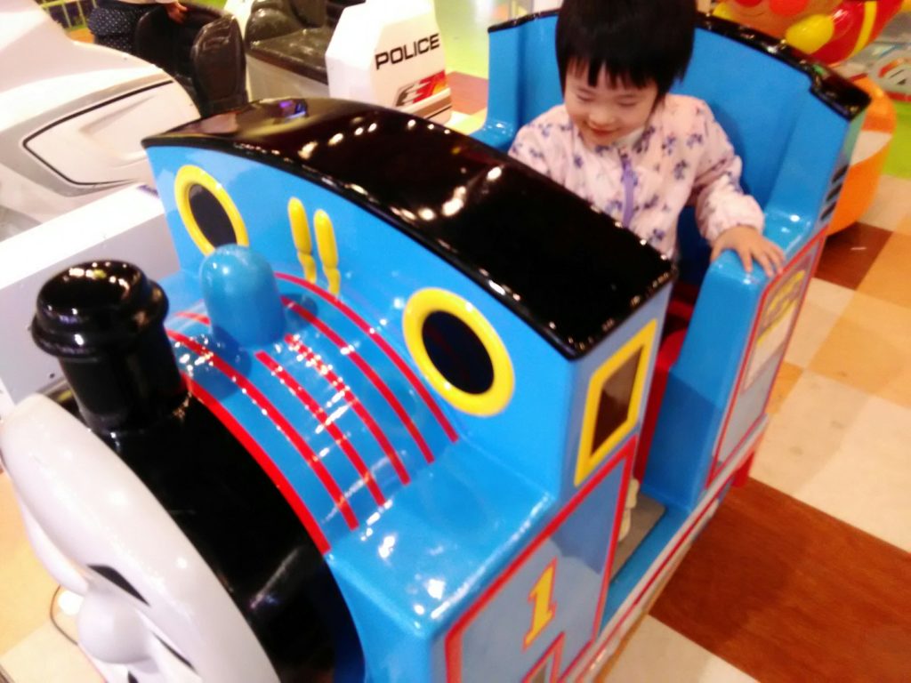 帰る途中で、病院に行ったご褒美に、機関車トーマスに乗って帰りました。熱も平熱で、就寝中の咳以外は、いつもと変わらず元気です。早く良くなりますように。