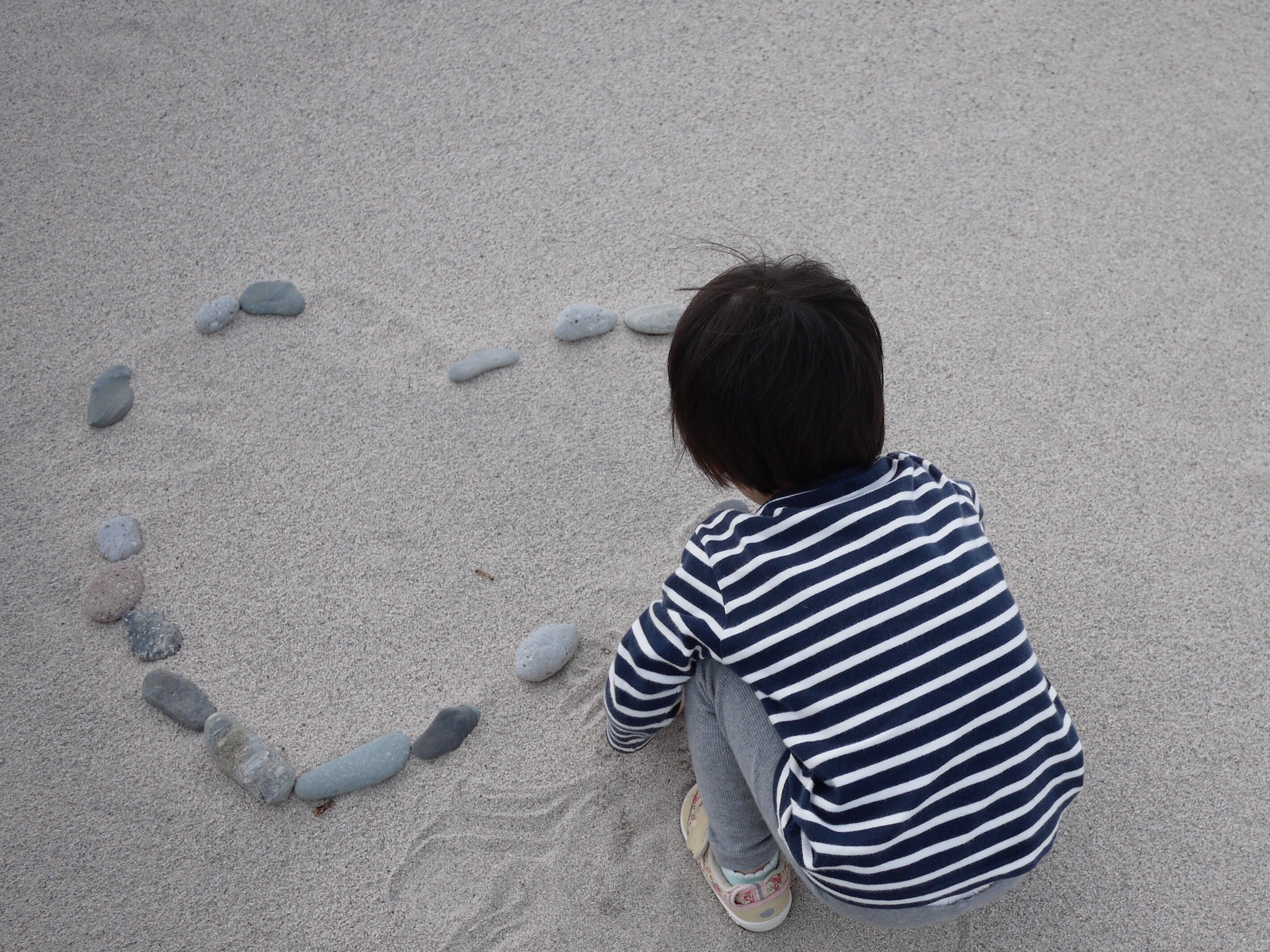 お散歩の続きは海へ。このハートの石は娘がやったのではなく、この形で並べてありました。