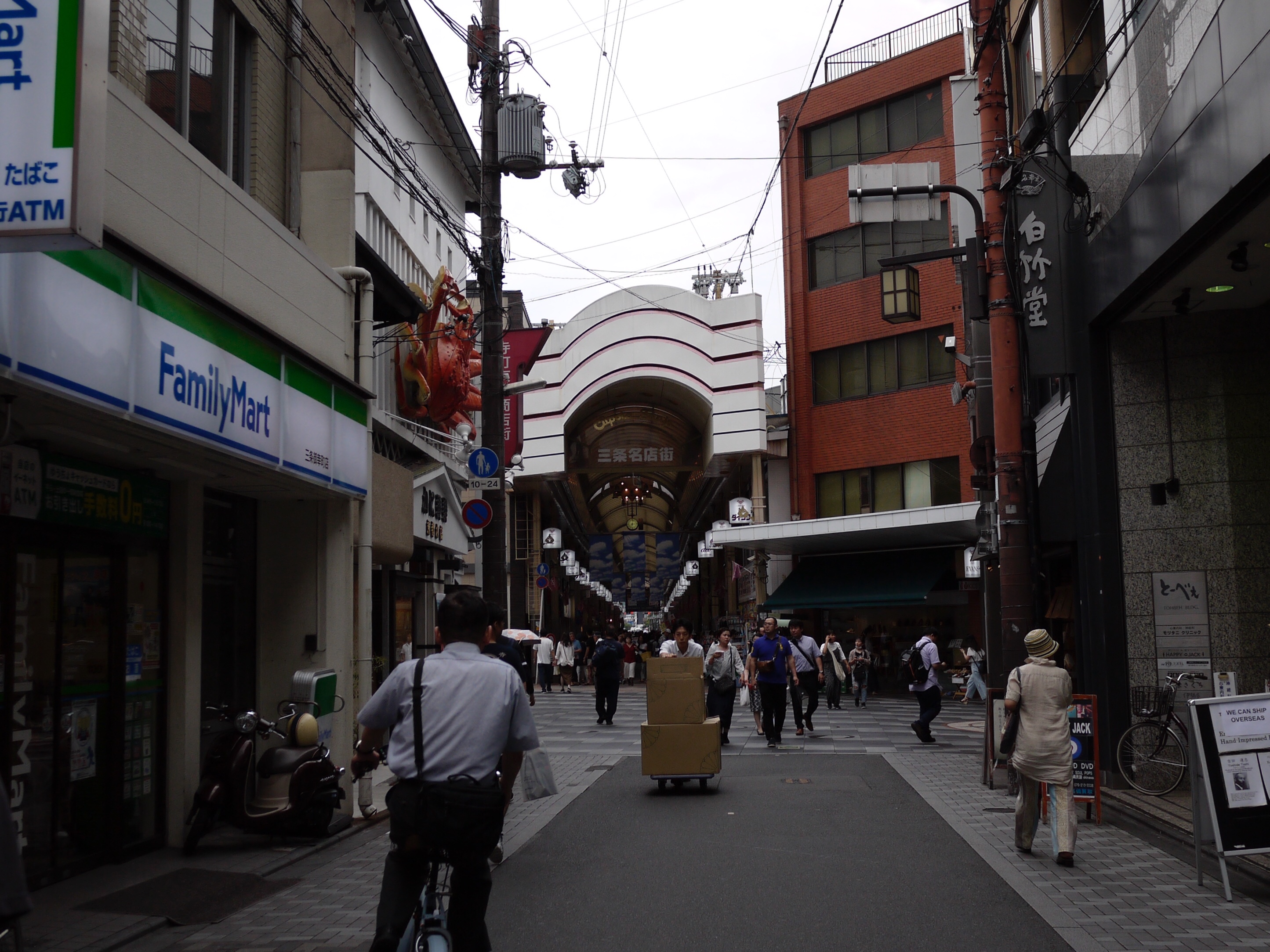 ここまで10分程歩くと三条商店街のアーケードが見えてきます。