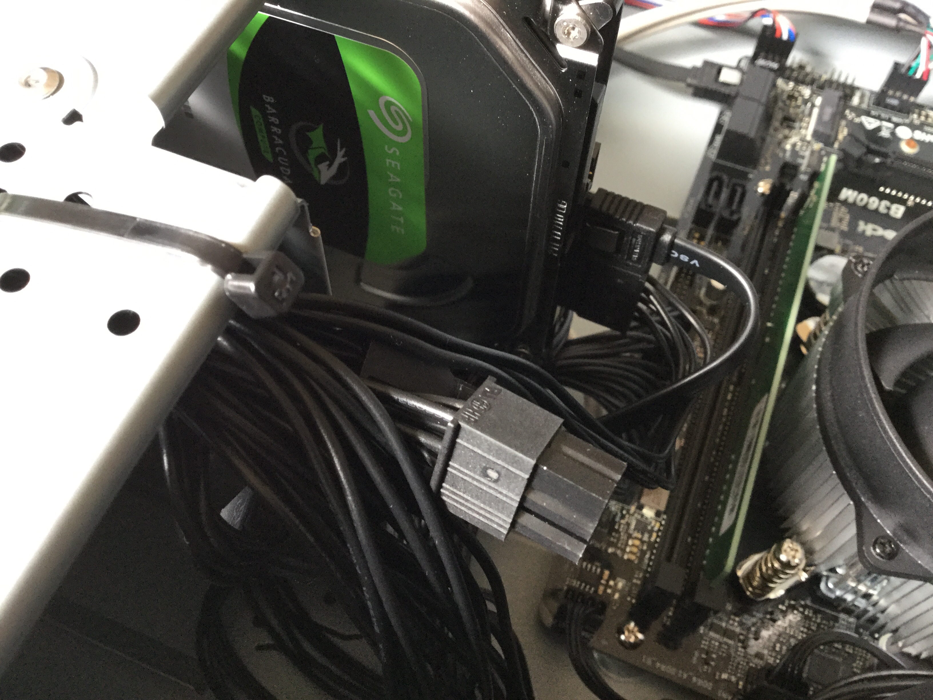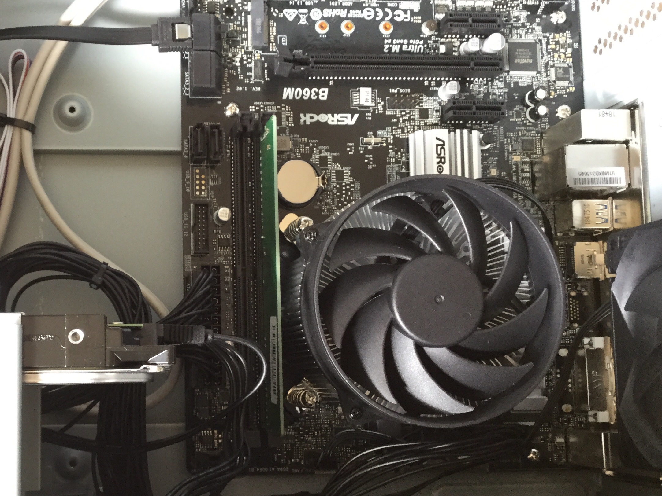 そして次の日。元気になった娘を保育園に送り、パソコンの設定をします。パソコンを仕事で使える状態にするには、普段使用しているソフトをインストールし直すという、なんとも面倒臭い作業が待っています。設定をする前にパソコンの中を覗いてみます。マザーボードはアスロック。
