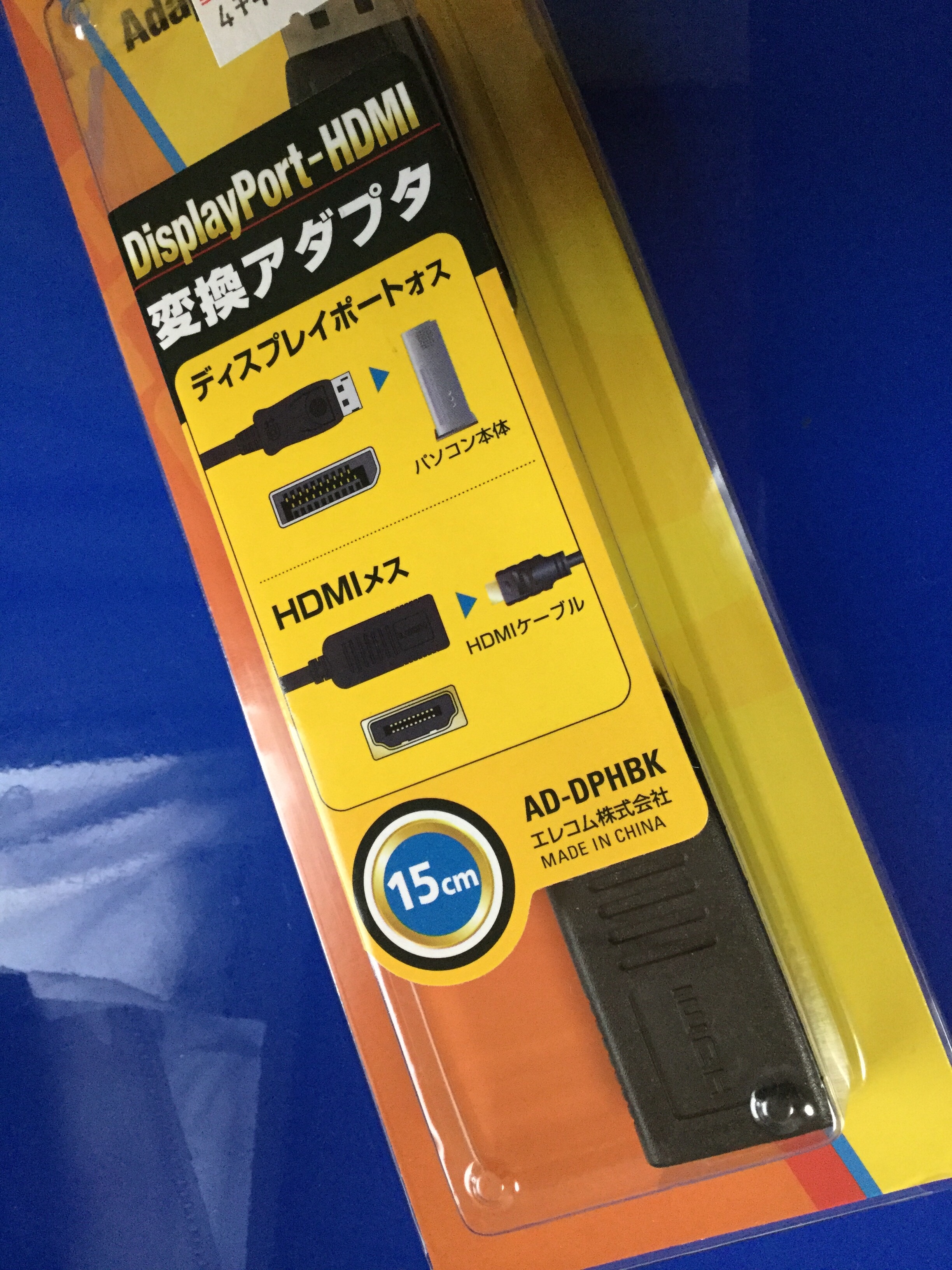 近所のパソコンショップで(近所にパソコンショップがあって助かった)でディスプレポートをHDMIに変換するアダプタを購入して、パソコンとディスプレイを繋げます。久しぶりにパソコンを購入すると、仕様が当時と変わっていたりと、ちょっとしたことでも時間がかかります。いや、事前に調べておけば済む問題ですけどね。