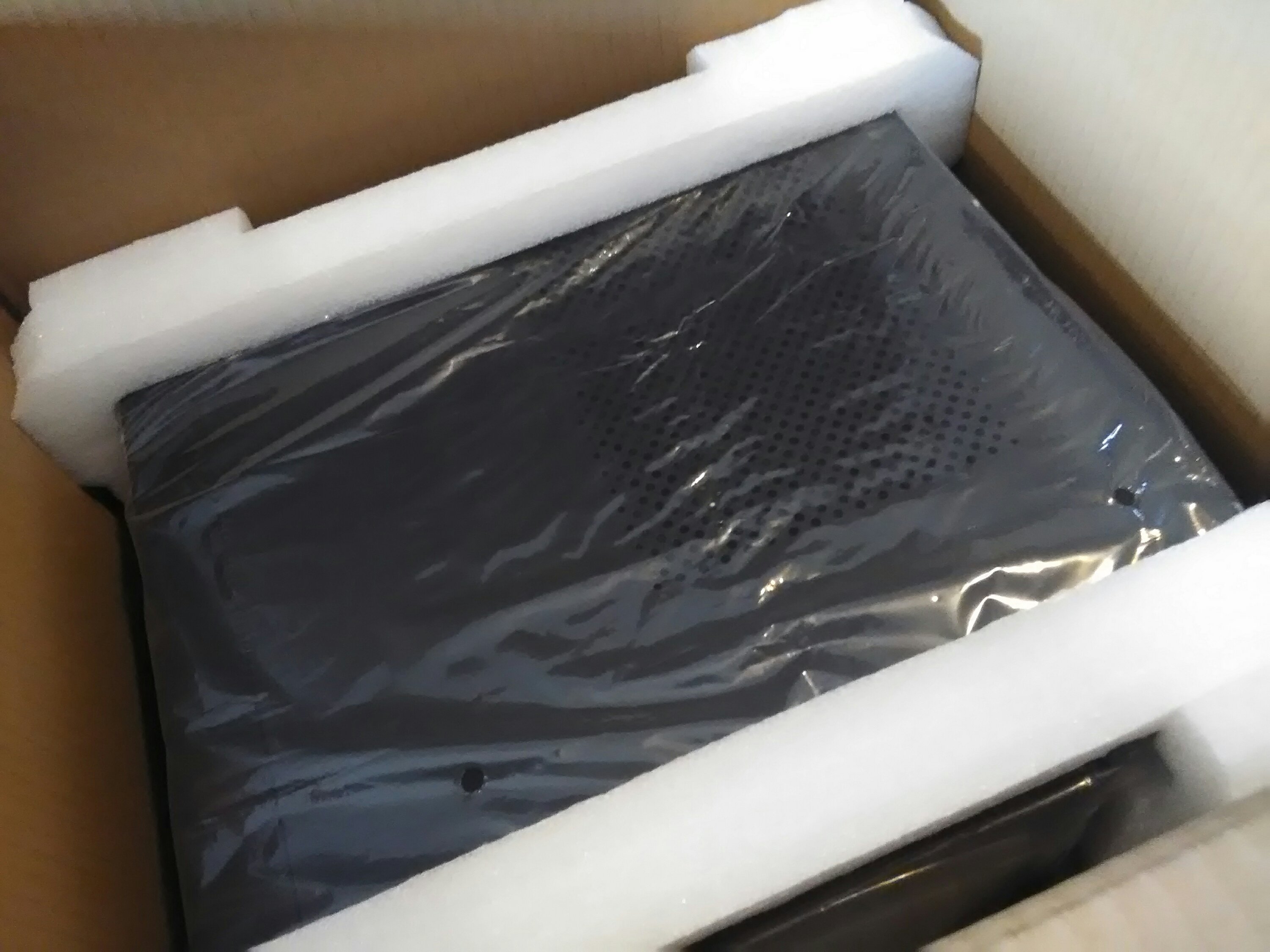 マウスコンピューターの工場で組み立てが終わったパソコンが届きました。早速設定をと思いましたが、なんと、この日は娘が熱で保育園を休むことになって、午前中は僕が娘を見ることになりました。娘を見ながらパソコンの設定をしようと思いましたが、娘は大きいダンボールに入った得体の知れない黒い箱に興味津々で、新しいパソコンや付属品が娘によって破壊されるのだけは避けたかったので、パソコンの設定は次の日にお預けです。