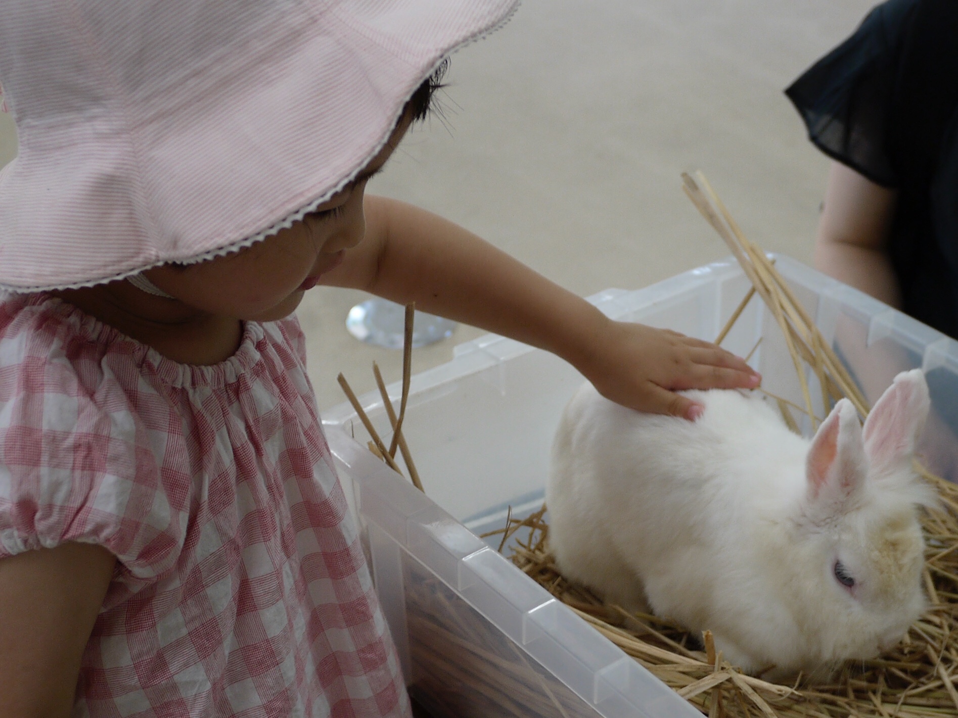 前回は怖くて触れなかったウサギも、今日は恐る恐るウサギに触れていました。