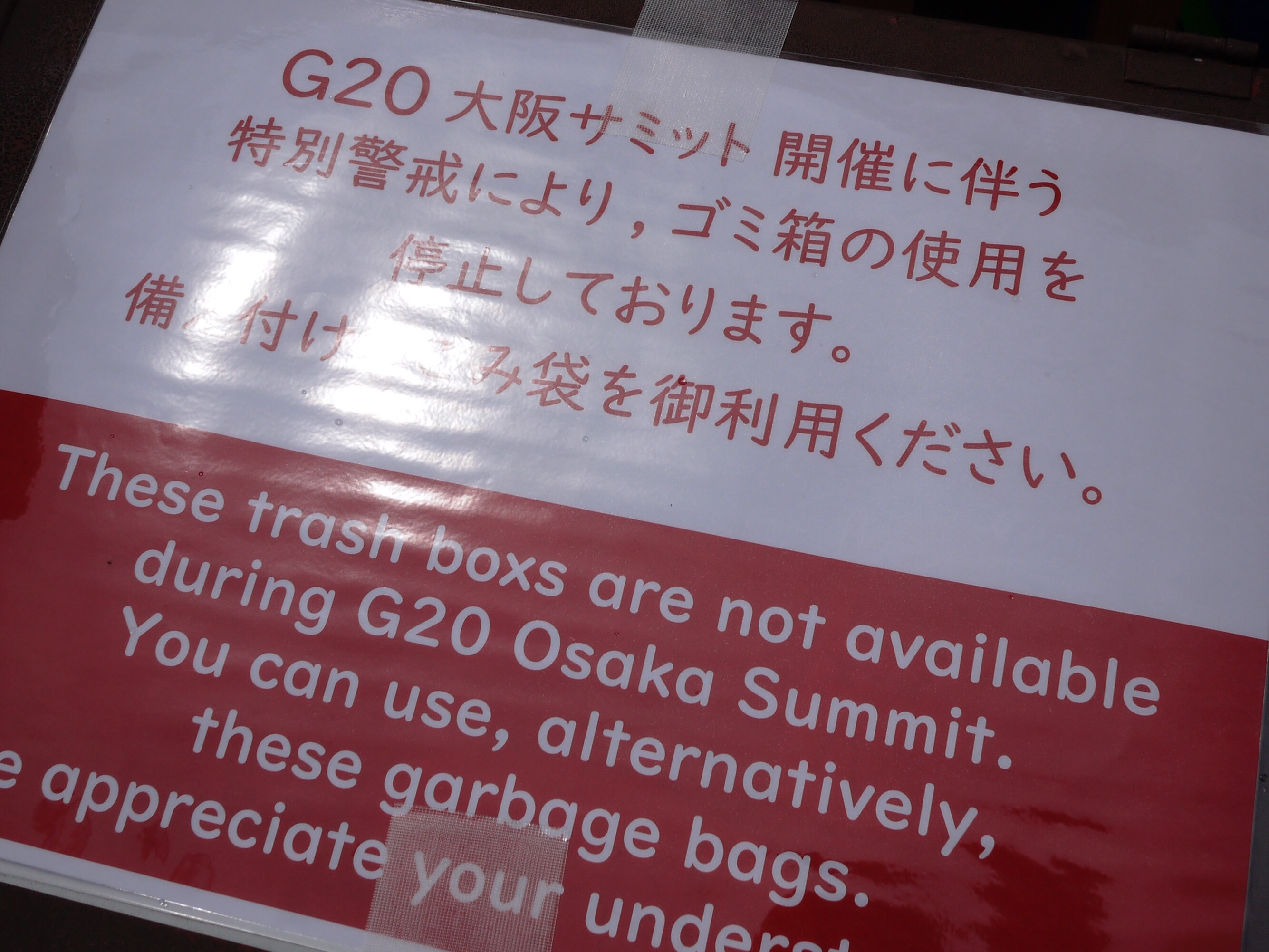 そうそう、G20の期間中で、京都のこんなところまでゴミ箱が使えませんでした。