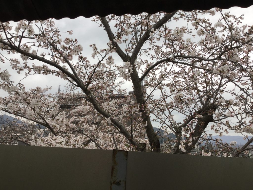 京都市の隣の亀岡市も満開ではありませんが桜が咲いていました。あいにくの曇り空。撮影場所 JR千代川駅(付近)