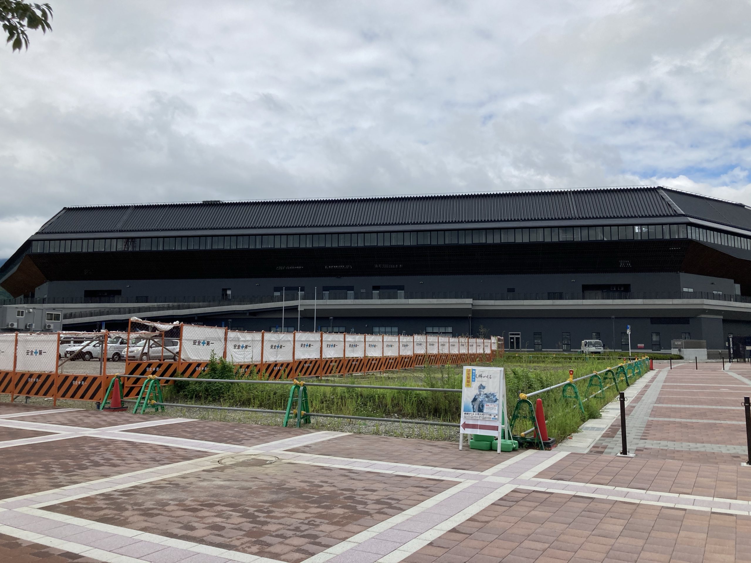リハーサルを終えて、次の予定のため亀岡市に向かいます。写真はJR亀岡駅前のサンガスタジアムです。