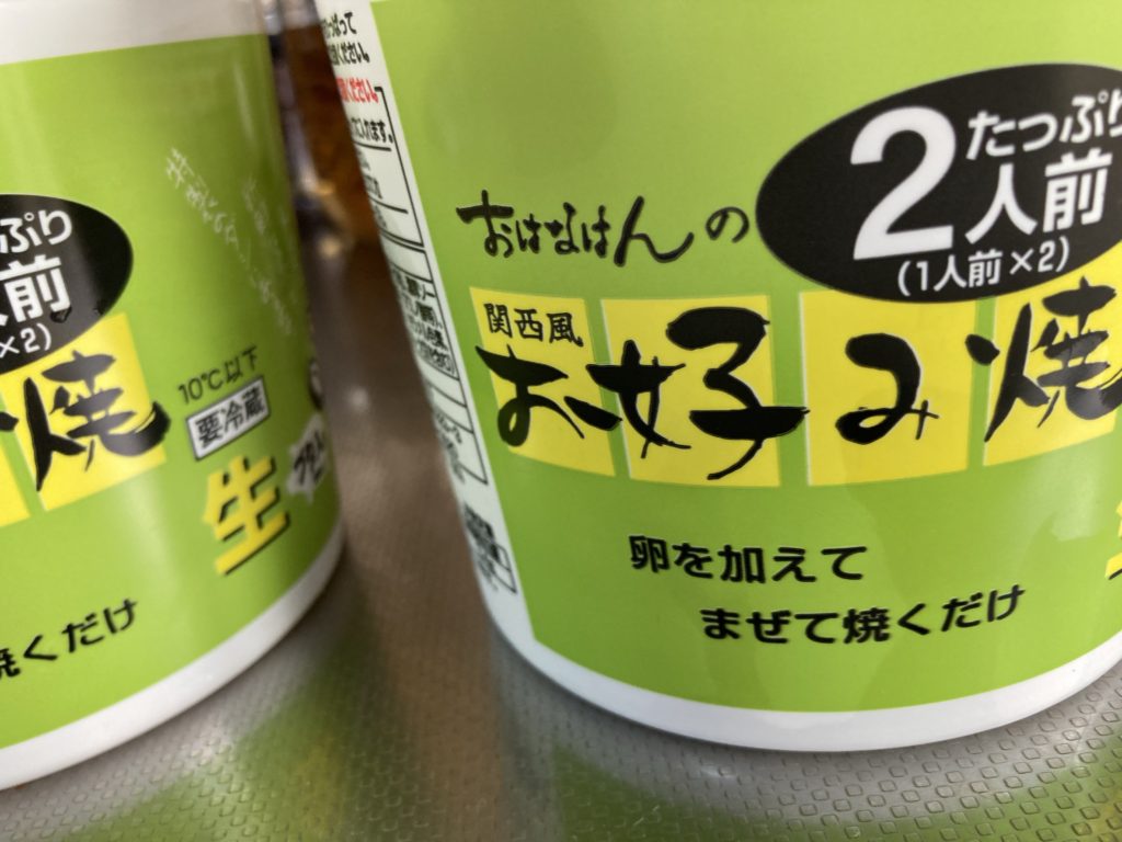 今日は、おはなはんの関西風お好み焼き。卵を加えてまぜて焼くだけの簡単調理。