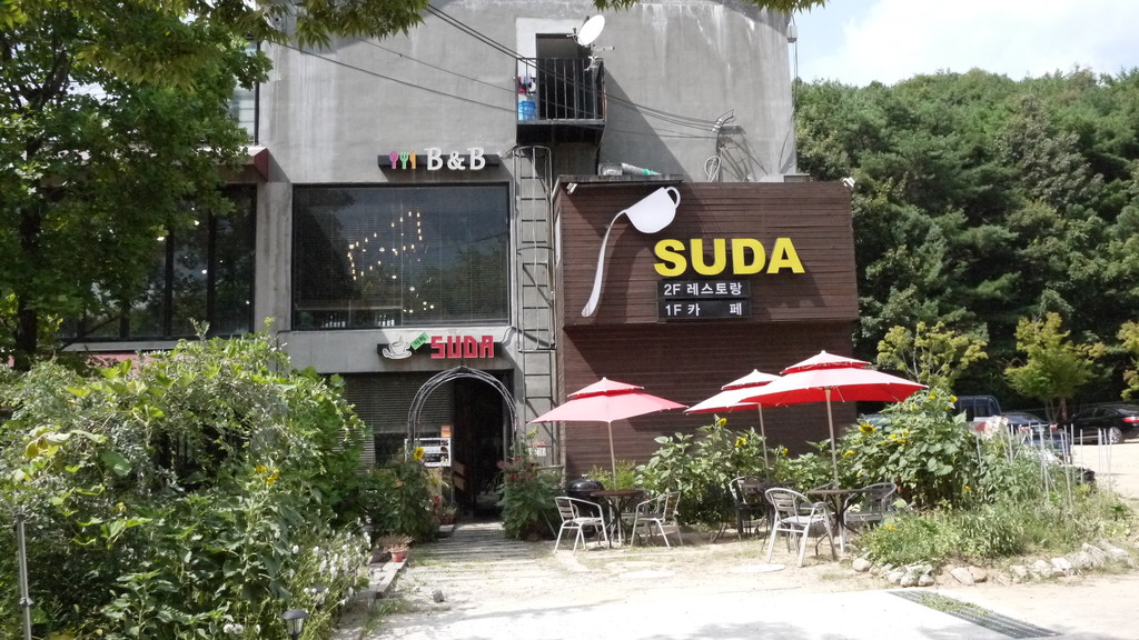 大邱は山に囲まれているので車でちょっと走れば山です。大邱の中心部から車で一時間のところにあるカフェで昼食を頂きました。