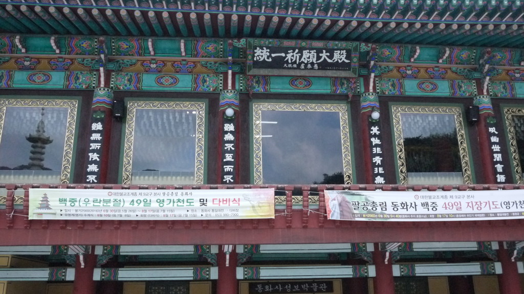 昼食後は大邱のお寺へ。とにかく広い。八公山の桐華寺、統一祈願大殿。